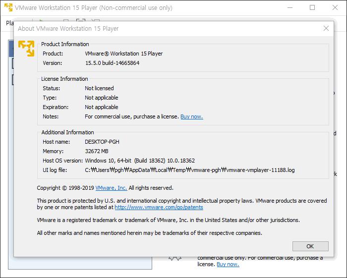 WMWARE Player 15.5 업데이트가 떠서 업데이트를 하려고 했더니 이상한(?) 메세지와 함께 설치가 안됩니다.