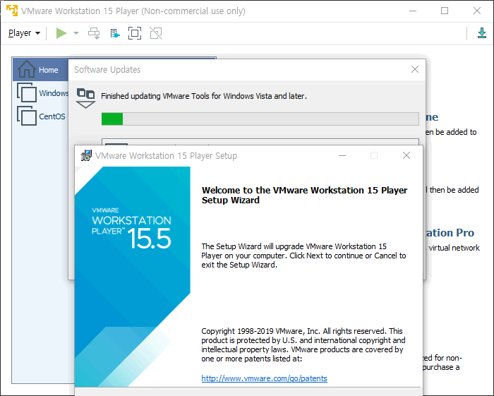 WMWARE Player 15.5 업데이트가 떠서 업데이트를 하려고 했더니 이상한(?) 메세지와 함께 설치가 안됩니다.